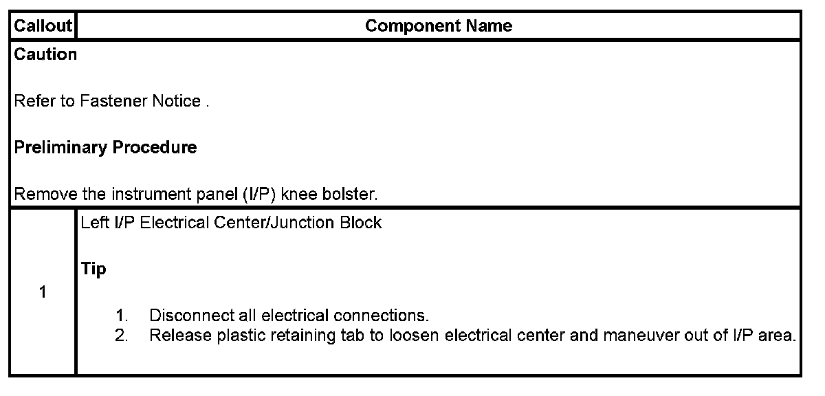 Instrument Panel Electrical Center or Junction Block Replacement - Left Side