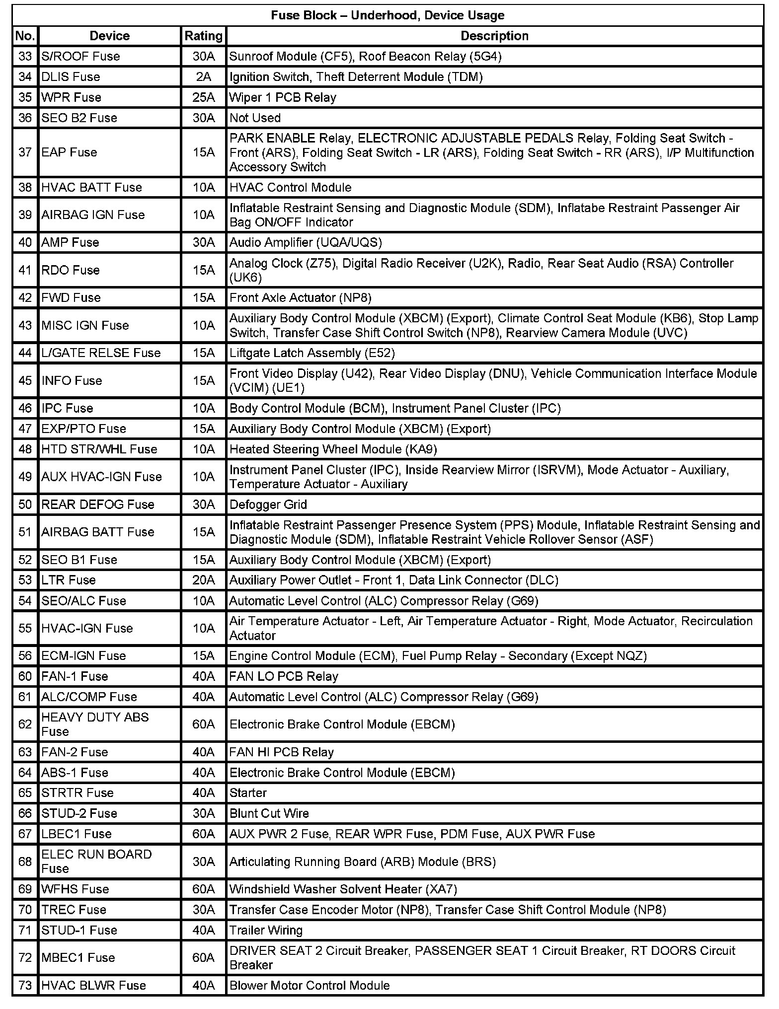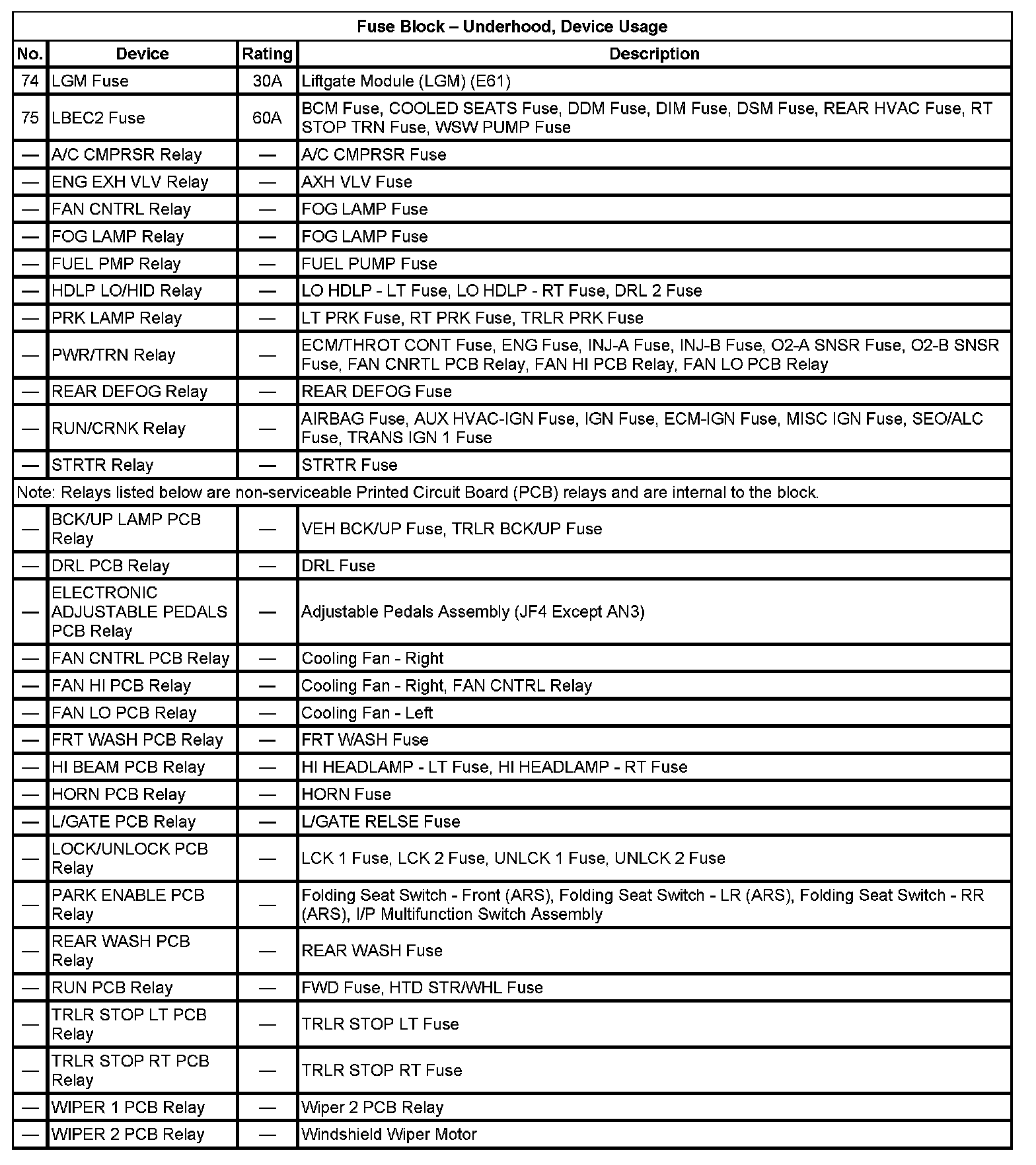 Fuse Block - Underhood, Device Usage (Part 1):