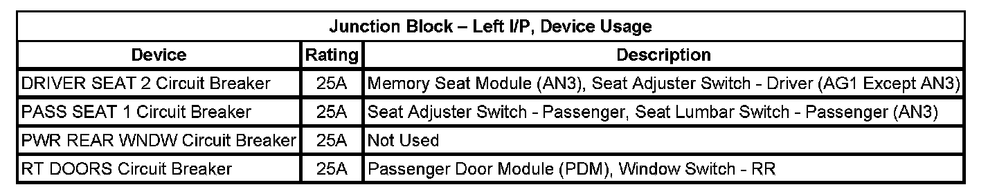 Junction Block - Left I/P, Device Usage: