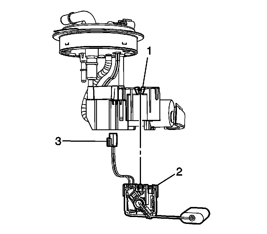 2. Disconnect the fuel level sensor electrical connector (3) from under the module cover.