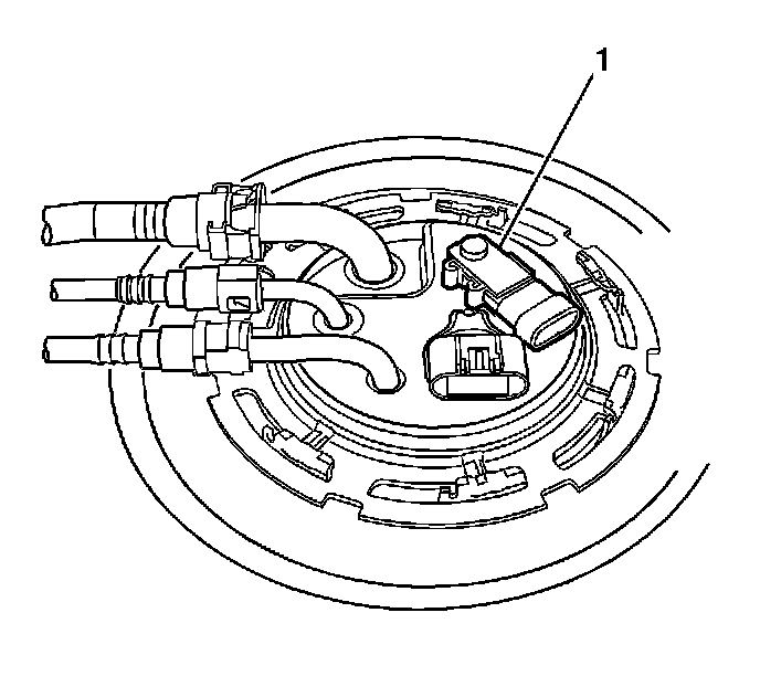 2. Using a slight rocking motion while pulling straight up, remove the fuel tank pressure sensor (1).