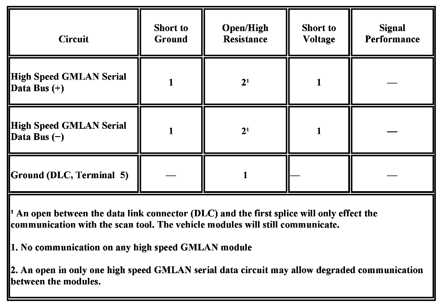 - Communication may be available between the BCM and the scan tool with the high speed GMLAN serial data system inoperative. This condition is due to the BCM using both the high and low speed GMLAN systems.