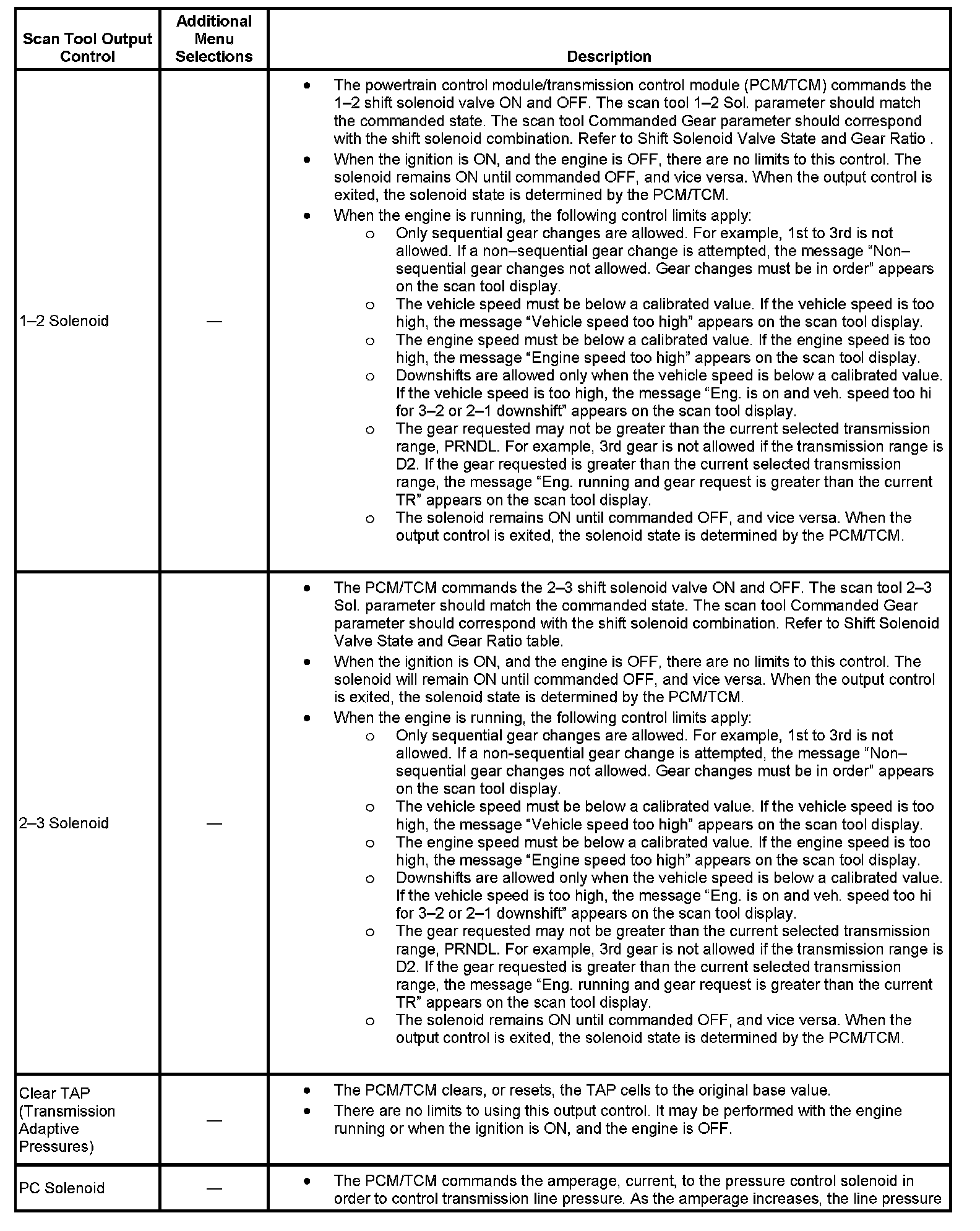Scan Tool Output Controls