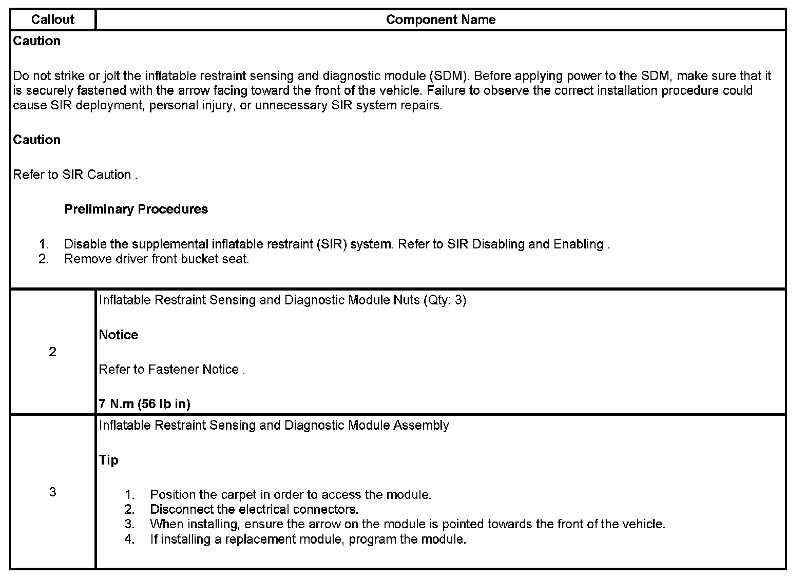INFLATABLE RESTRAINT SENSING AND DIAGNOSTIC MODULE REPLACEMENT