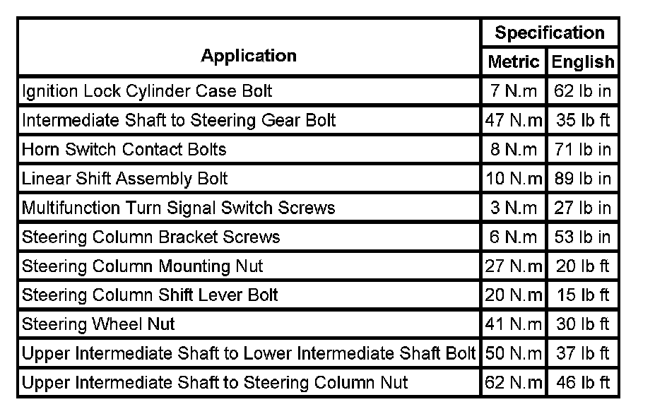Fastener Tightening Specifications: