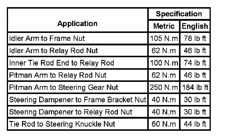 Fastener Tightening Specifications: