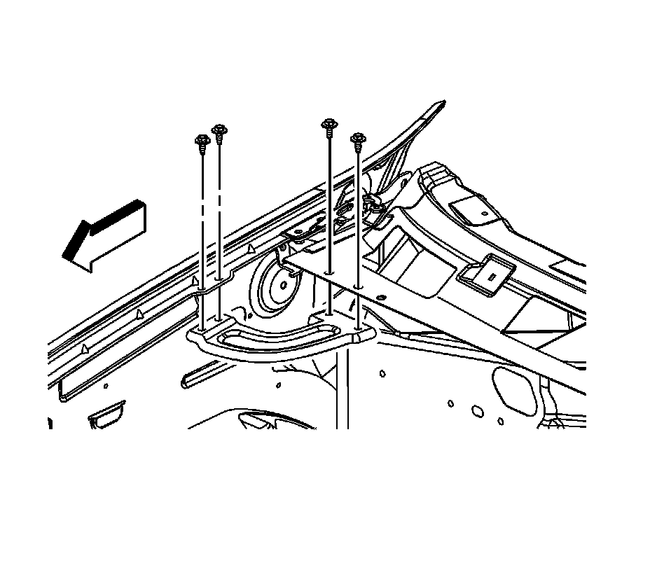 6. Remove the front fender rear upper brace bolts and brace.
