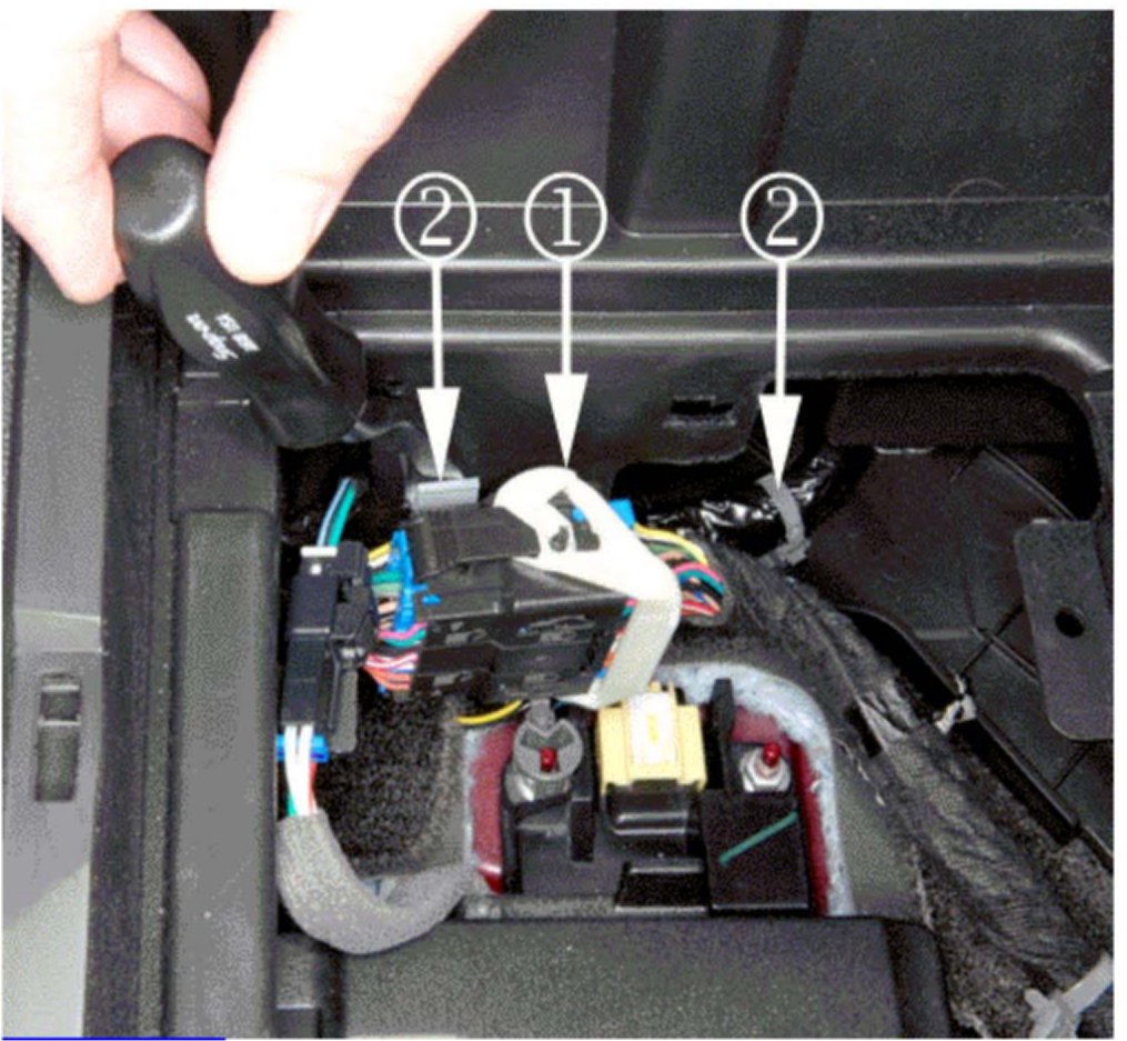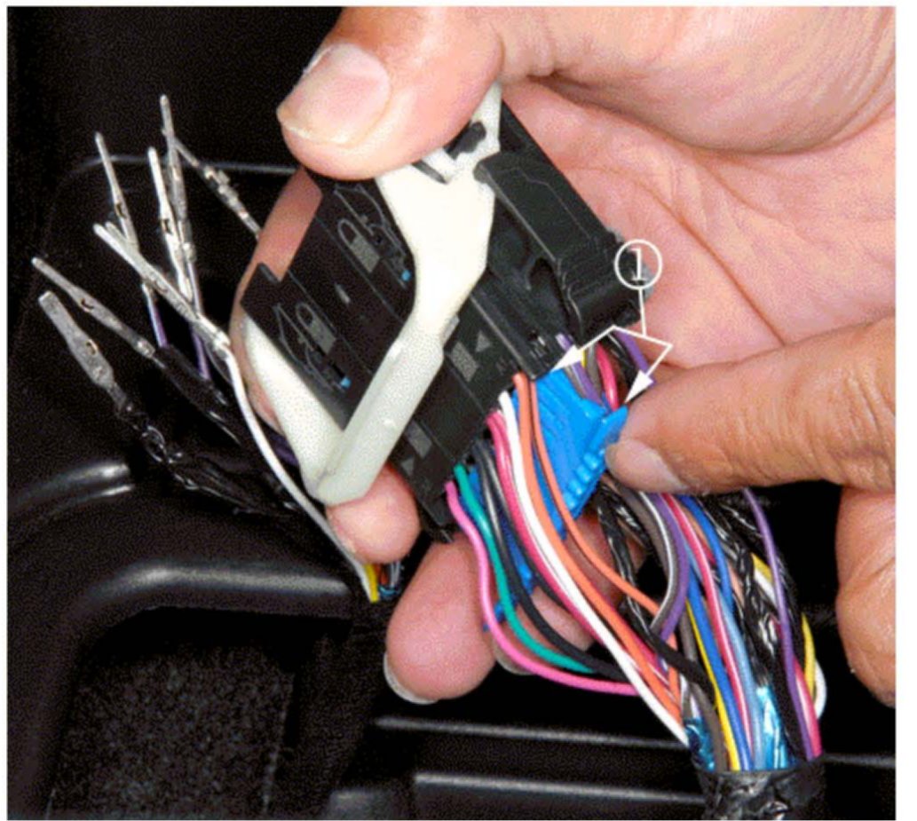 Pull the repair harness (1) out from the lower left-hand rear side of the console.
