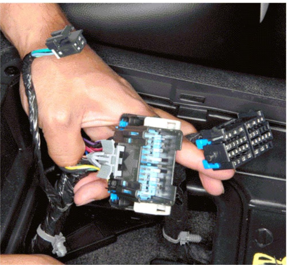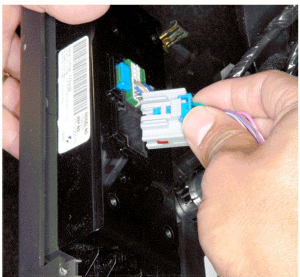 Connect the 8-way audio/video jack connector if the vehicle is equipped with the UVA radio system. The UVB harness will not have the 8-way connector.