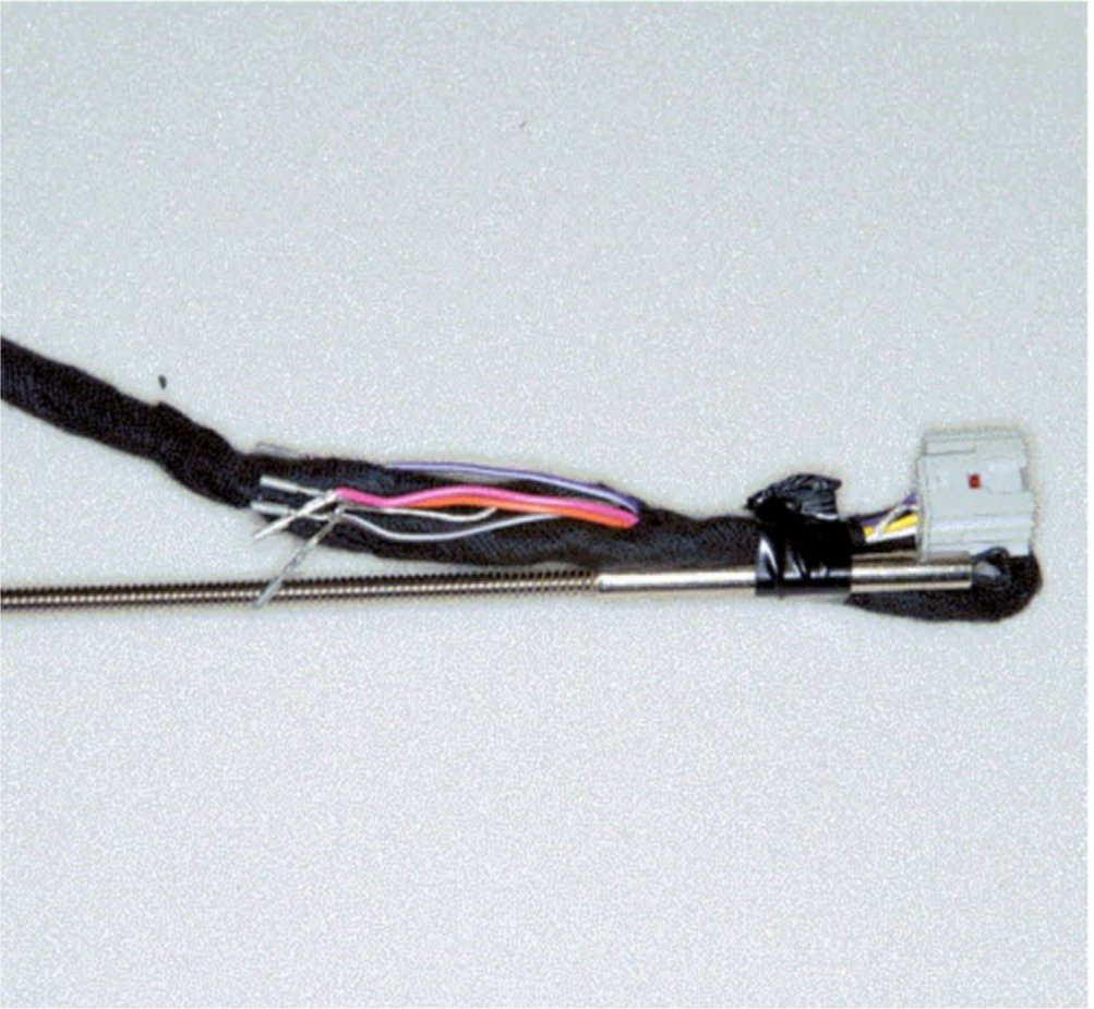 Cut back 50 mm (2 in) of tape on the console harness using a seam ripper (tool C). This will expose the circuits, which improves cavity access at the 40-way connector.