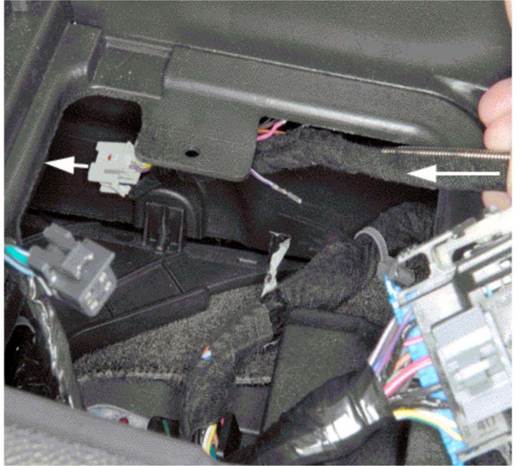 Remove the power point connection from the RSA trim plate by releasing the power point connection release lock using a standard screw driver (tool H).