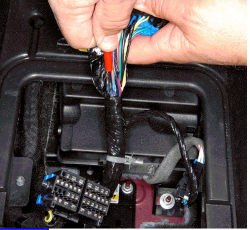 Tape the repair jumper to the console harness and install the RSA Trim plate. Refer to Step 9 in the Jumper Harness Installation (Continued) procedure section of this bulletin.