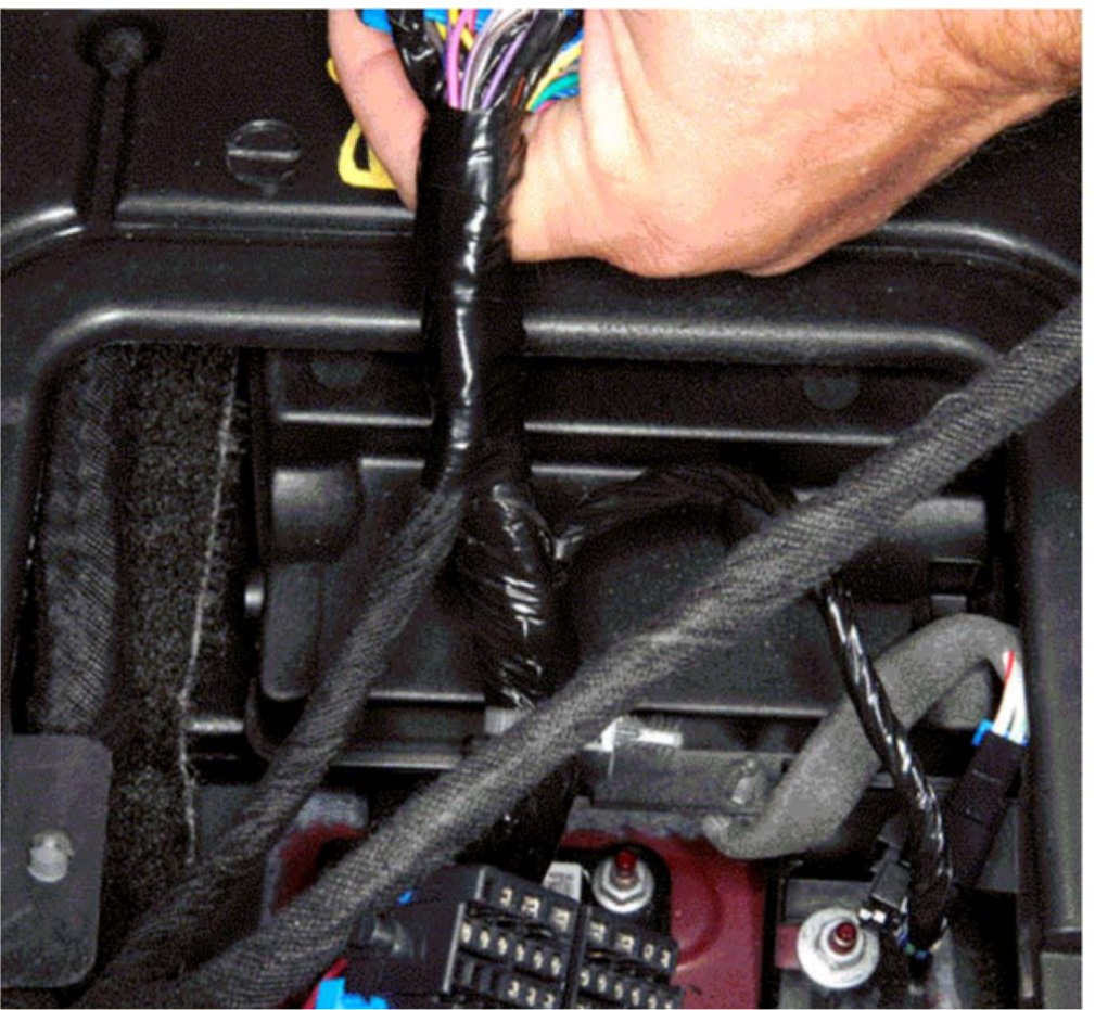 For vehicles equipped with the UVA radio system, tape the harness end with the gray 16-way connector.