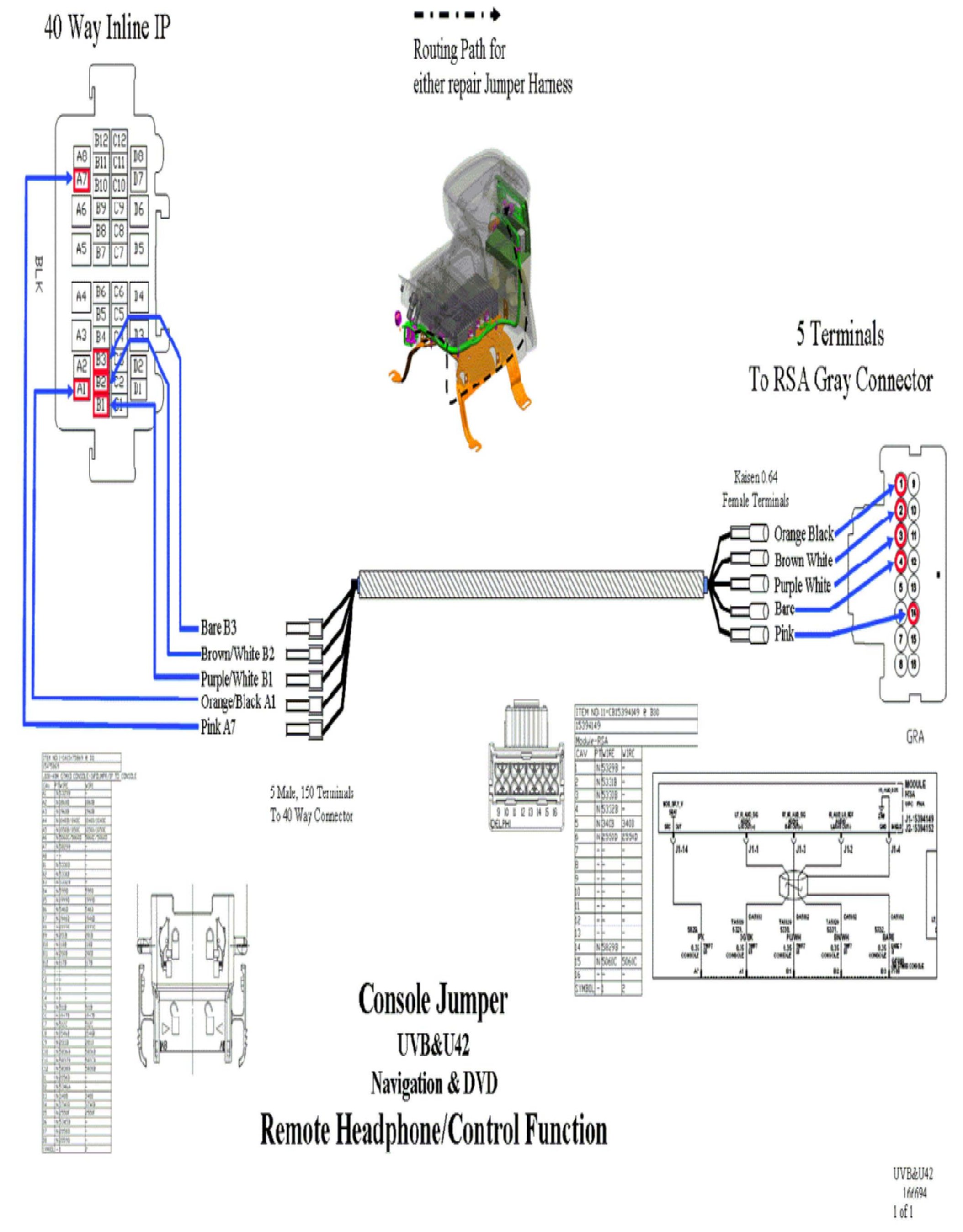 The service procedure in this bulletin provides repair instructions for non-navigation radio, DVD and Mid East radio frequencies (RPO UVA U42 UL8), and navigation radio, DVD, and Mid East radio frequencies (RPO UVB U42 UL8). Performing the service repair procedure in this bulletin will restore headphone and remote control function for non-navigation and navigation radios with DVD. Instructions for installing functional audio video jacks on vehicles equipped with non-navigation radios with DVD are provided as well.Required Tools and Materials