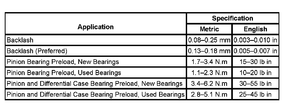 Axle Preload and Backlash Specifications: