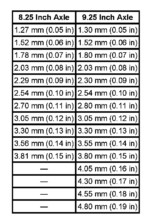 Front drive axle clutch shims are available in the following sizes: