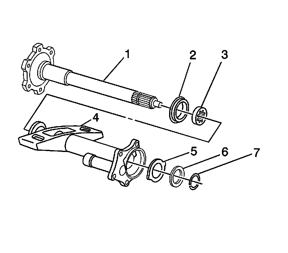 4. Install the retaining ring (7) into the inner axle shaft (1).