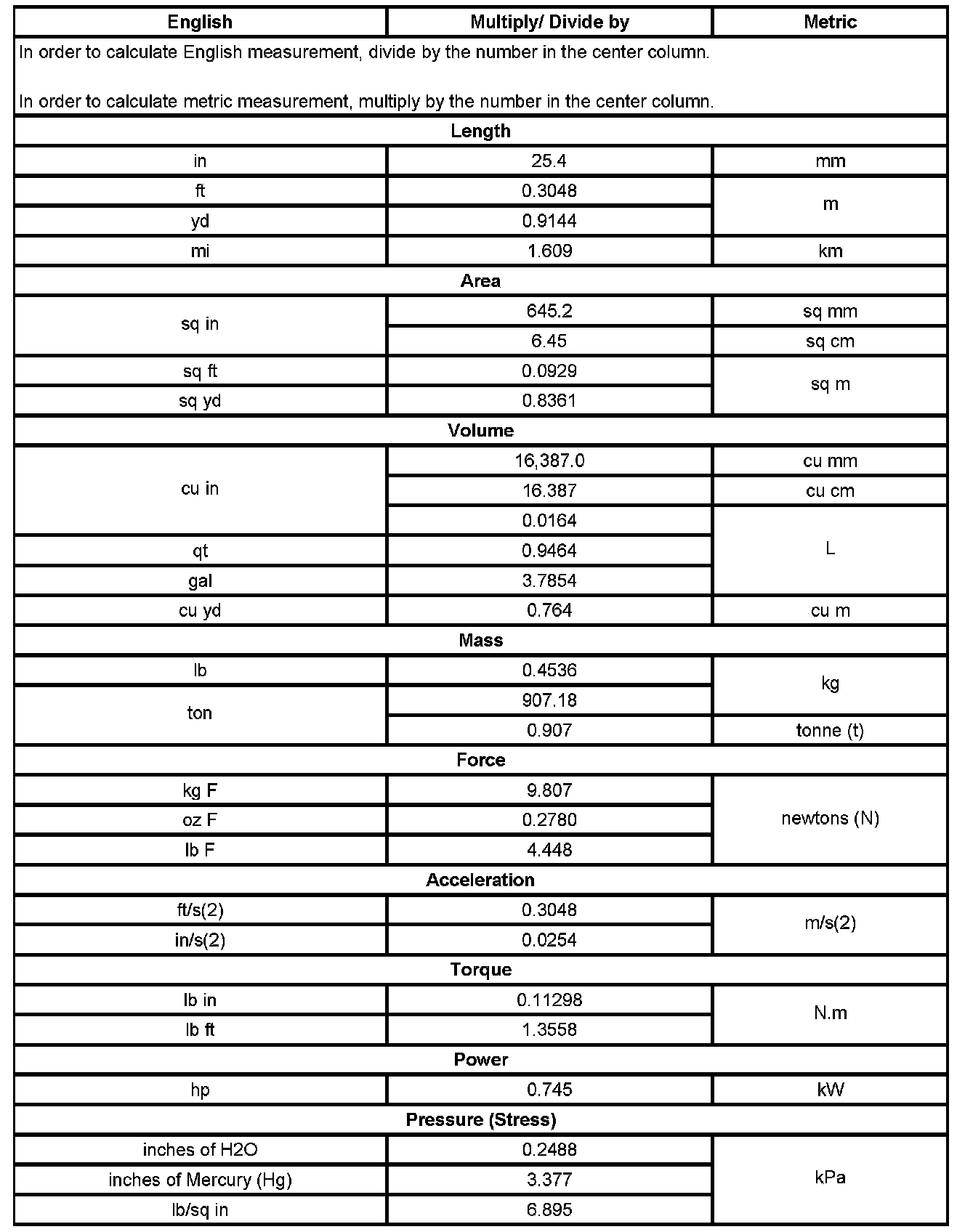 US English/Metric Conversion