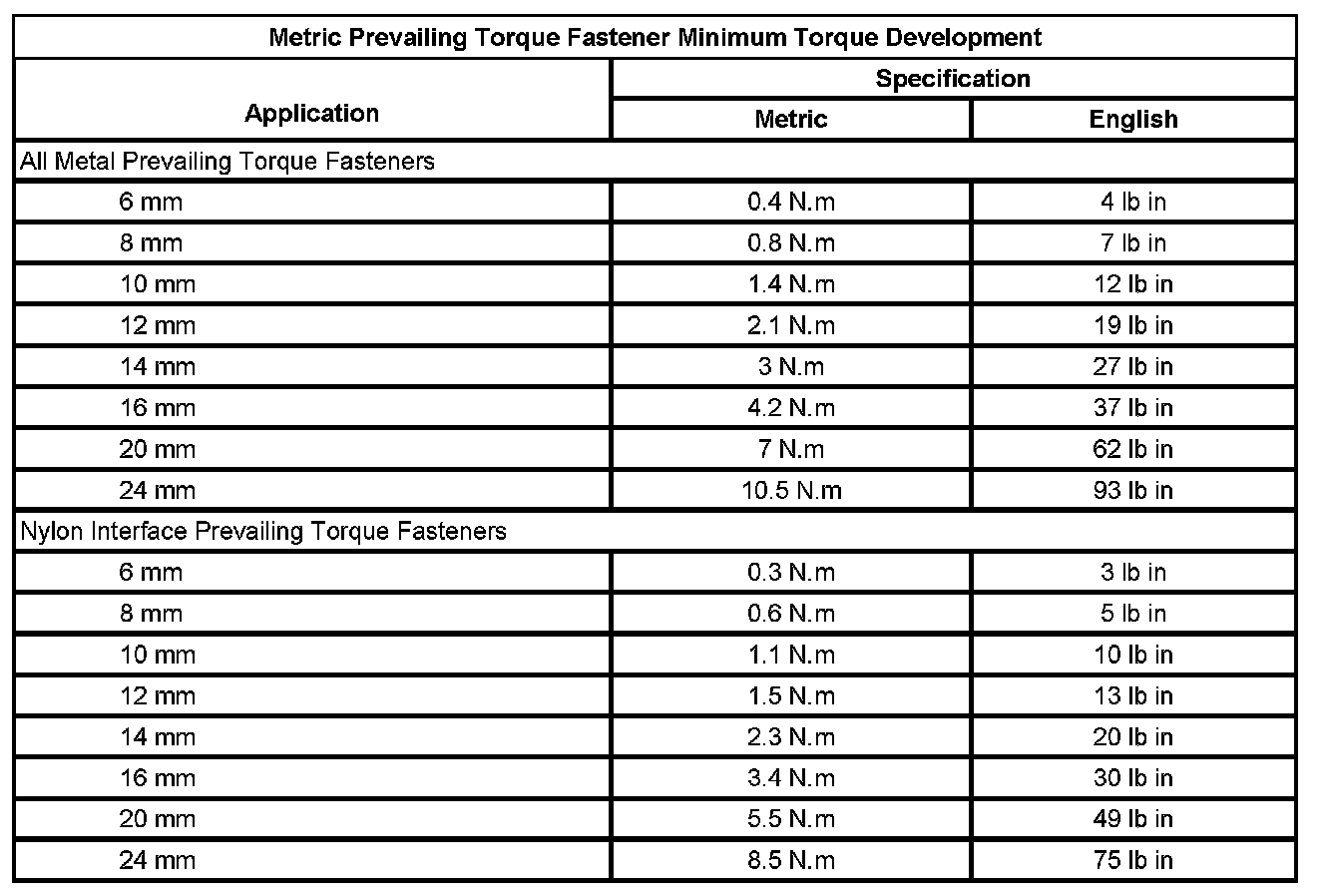 Prevailing Torque Fasteners
