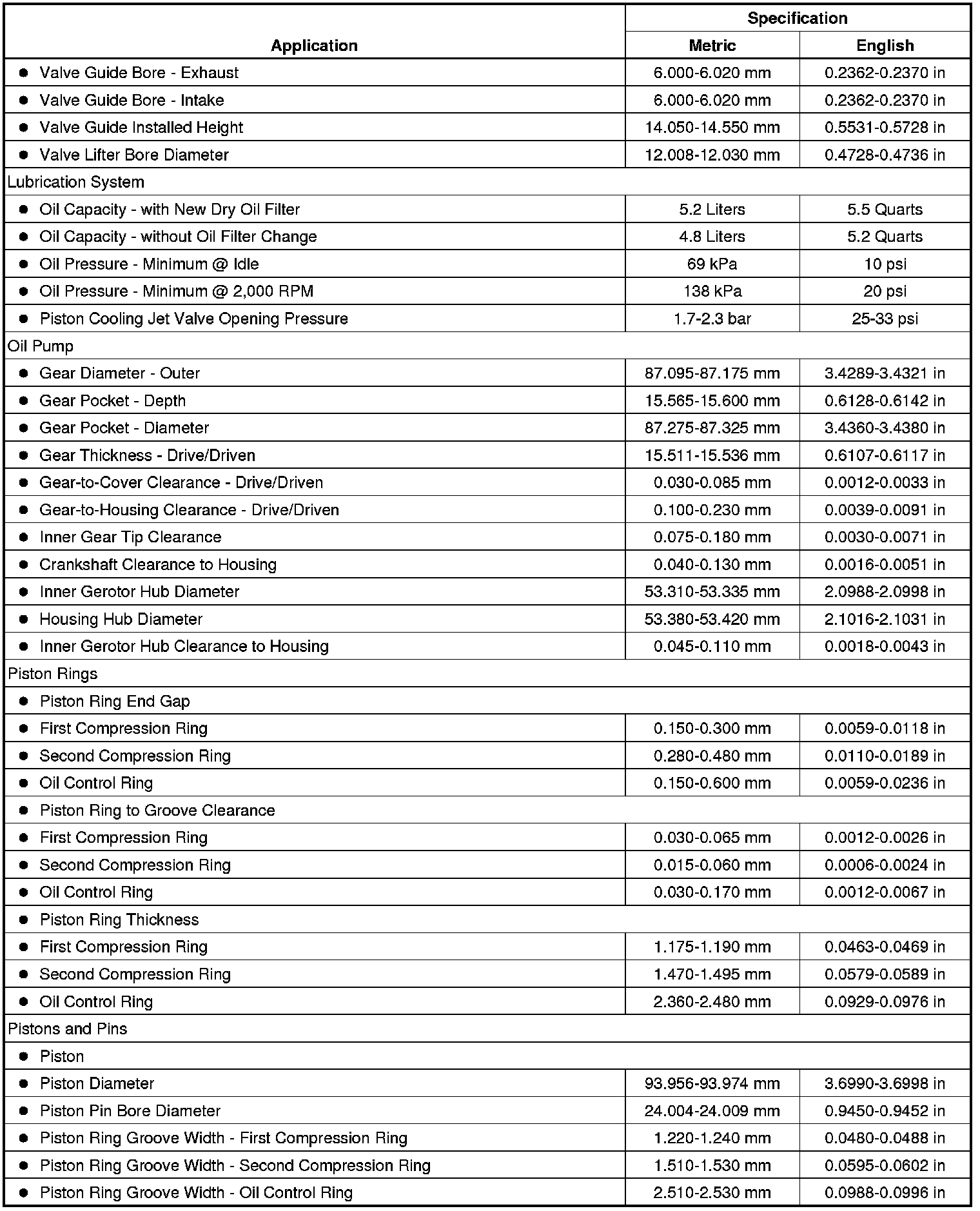 Engine Mechanical Specifications