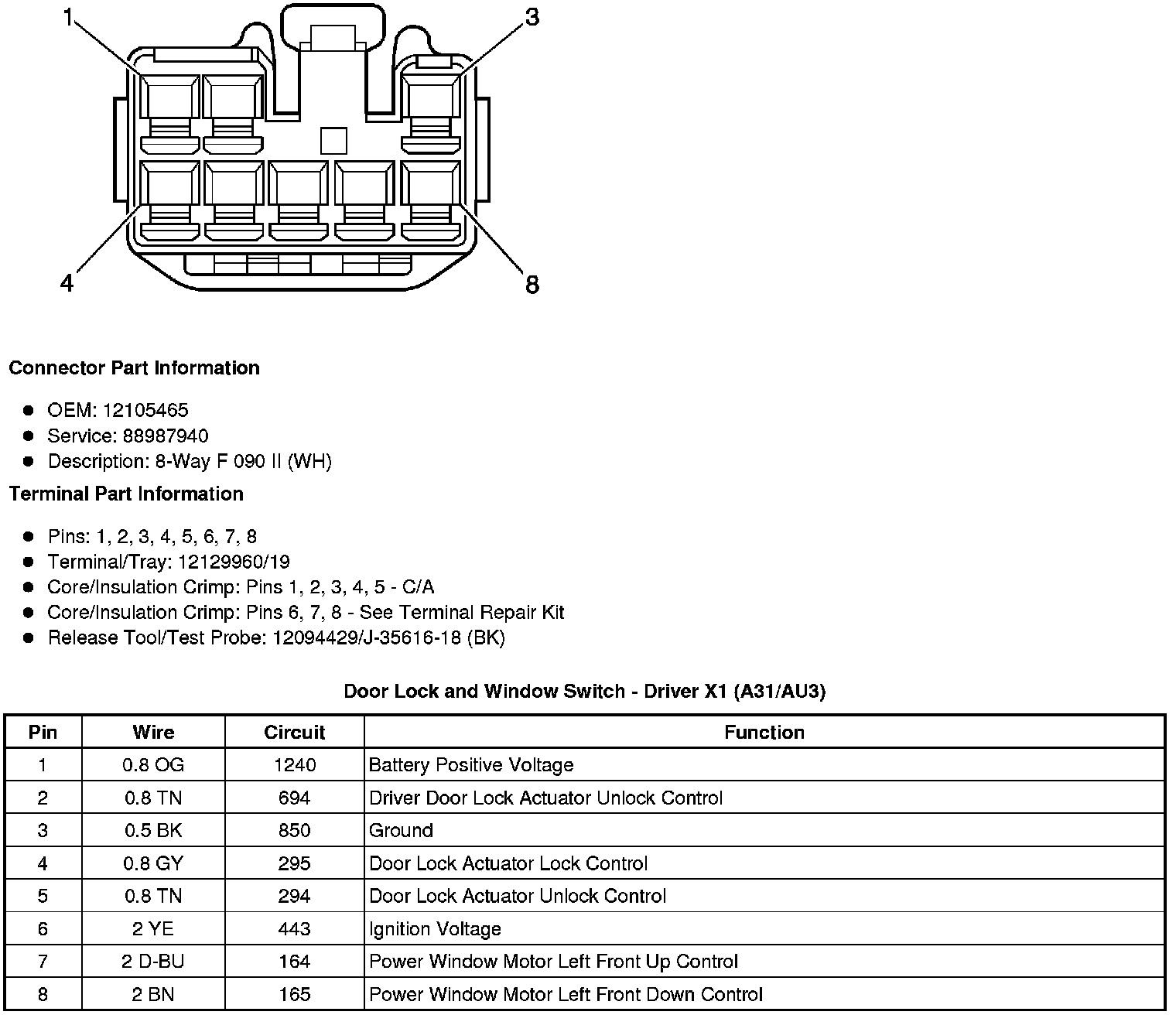 Door Lock and Window Switch - Driver X1 (A31/AU3)