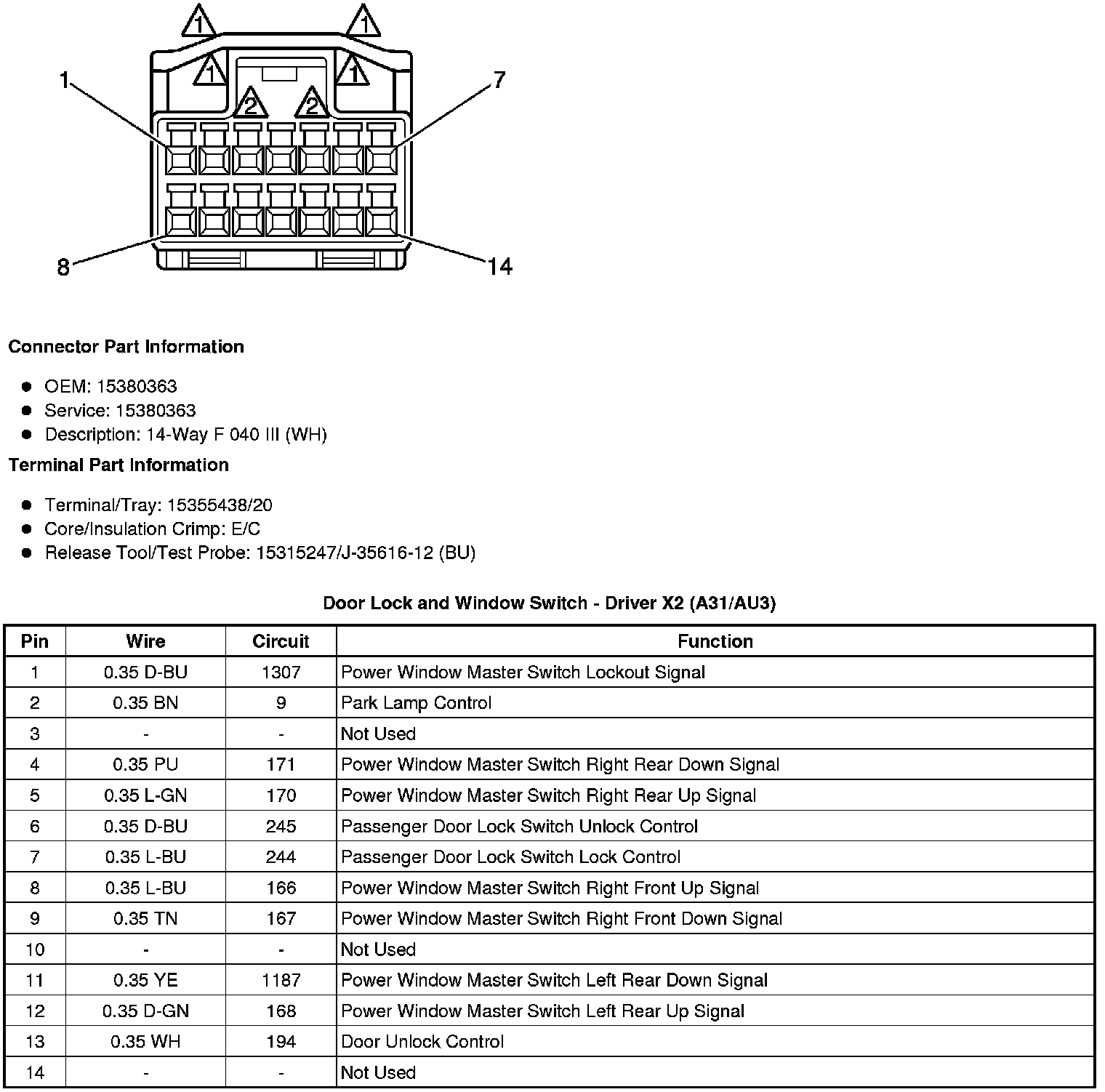 Door Lock and Window Switch - Front Passenger (A31/AU3)