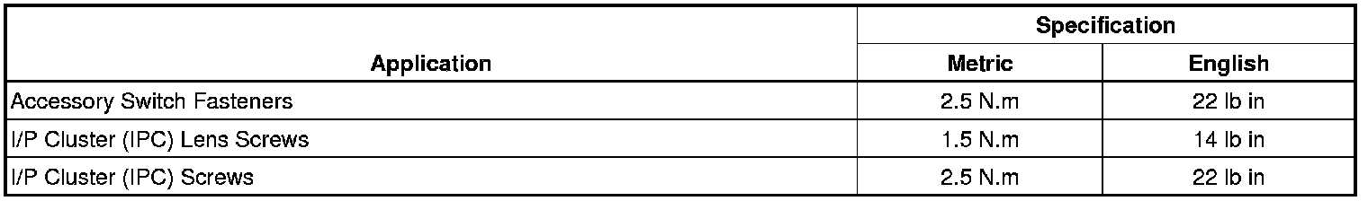 Instrument Panel, Gauges and Warning Indicators: Specifications