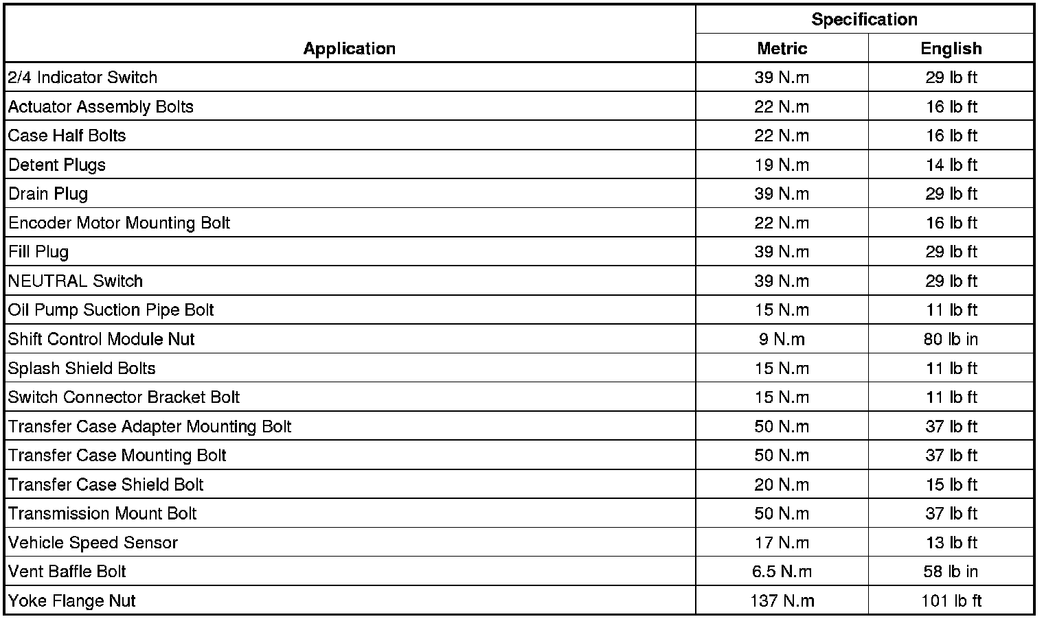 Fastener Tightening Specifications
