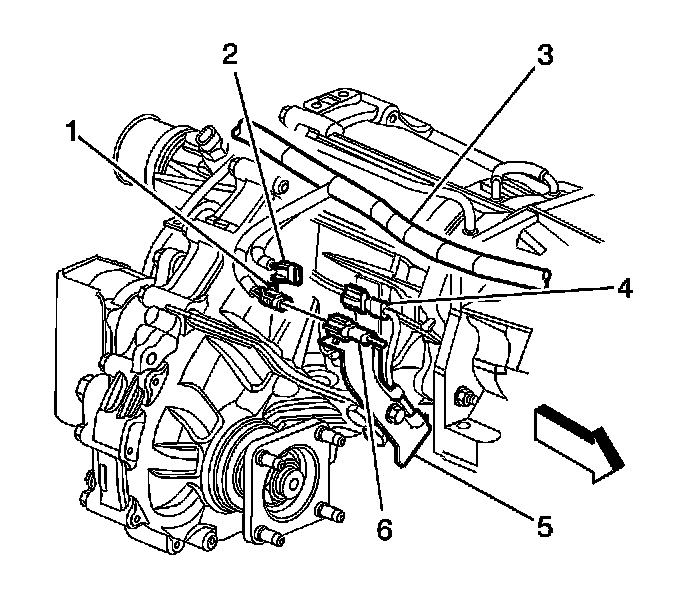 5. Disconnect the engine wiring harness electrical connectors (3, 5) from the following: