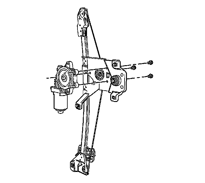 3. Install the rear door window regulator. Refer to Rear Side Door Window Regulator Replacement (Service and Repair) .