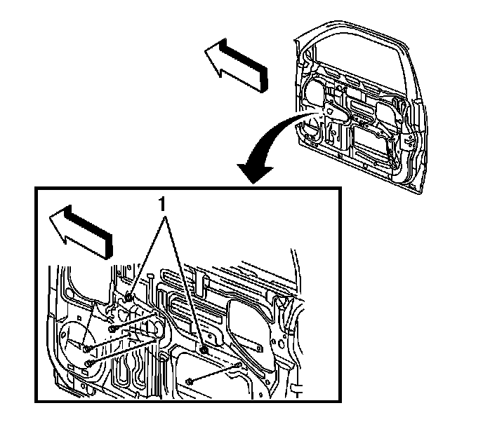 6. Loosen the bolts (1) retaining the window regulator to the inner panel at the keyhole slot locations.