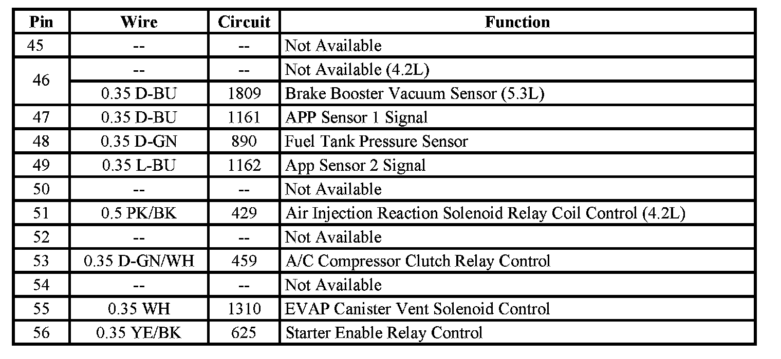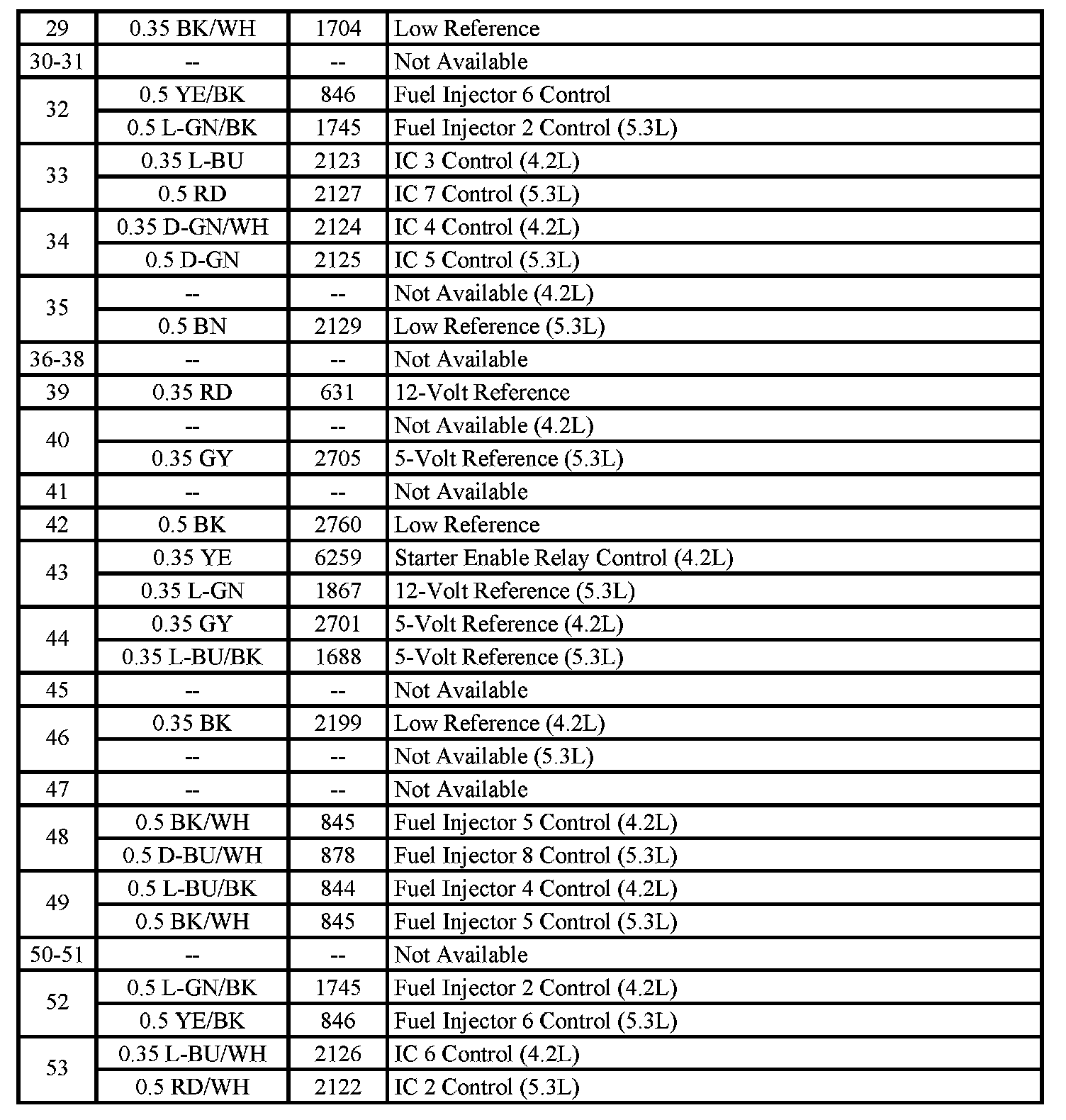 - Pins: 1, 17, 33, 34, 53, 54, 62 (4.2L)