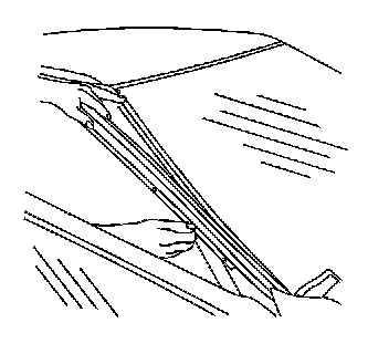 Grasp the lower corner of the windshield reveal molding by hand and slowly pull the reveal molding away from the windshield.