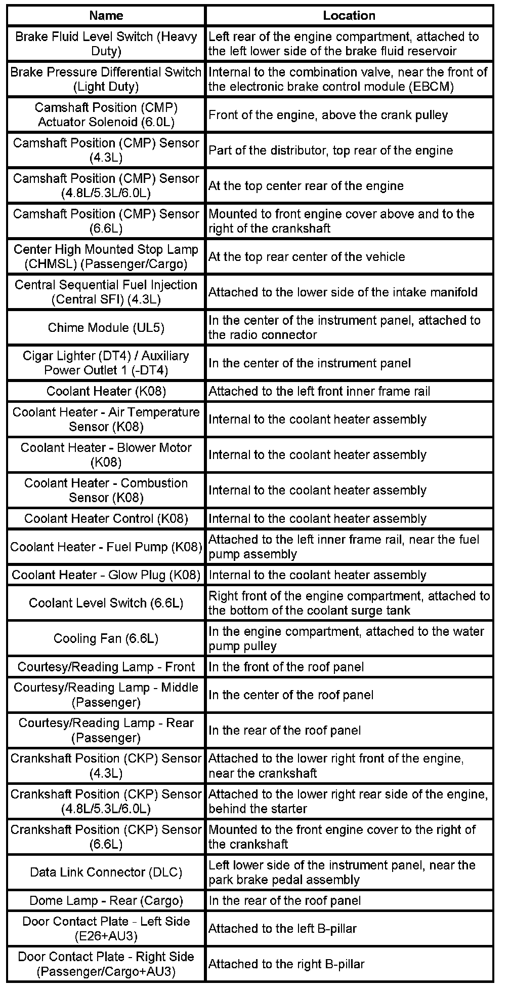 Master Electrical Component List