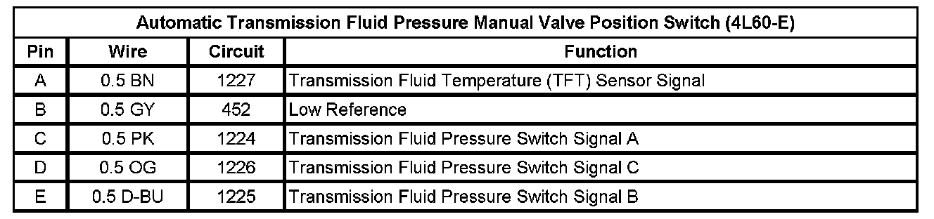 Automatic Transmission Fluid Pressure Manual Valve Position Switch (4L60-E)