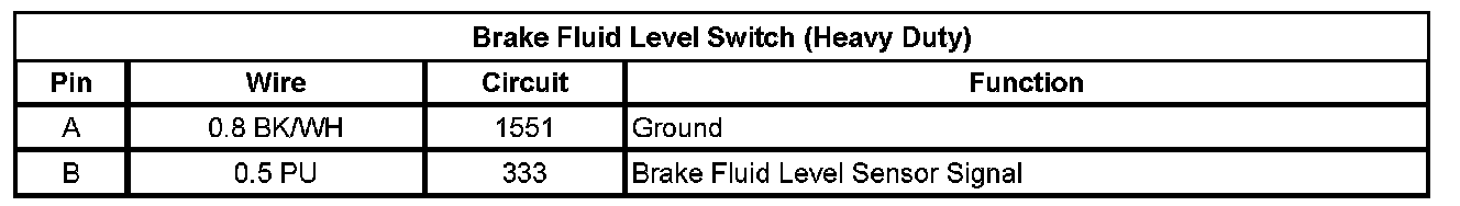 Brake Fluid Level Switch (Heavy Duty)