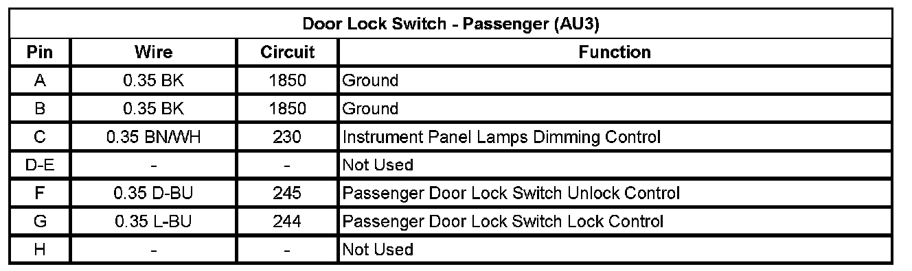 Door Lock Switch - Rear Cargo (Passenger/Cargo +AU3)