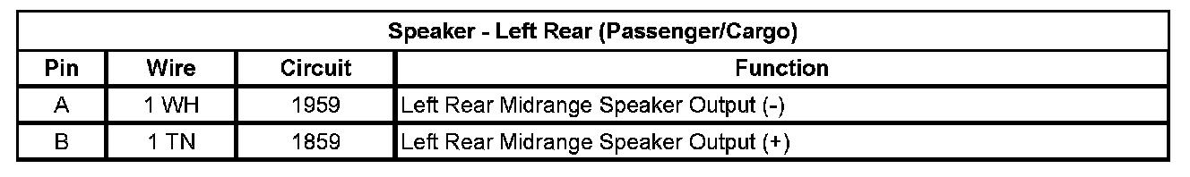 Speaker - Left Rear (Passenger/Cargo)