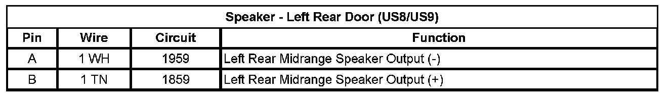 Speaker - Left Rear Door (US8/US9)