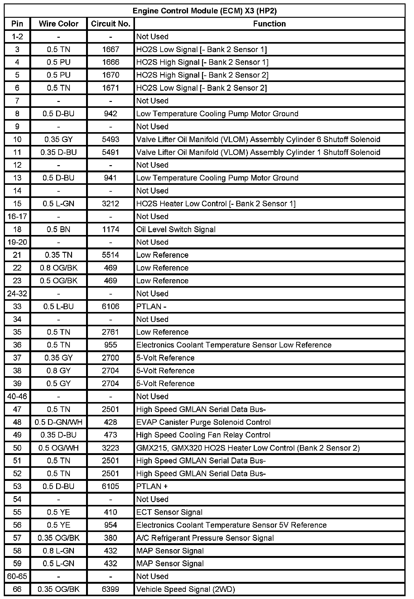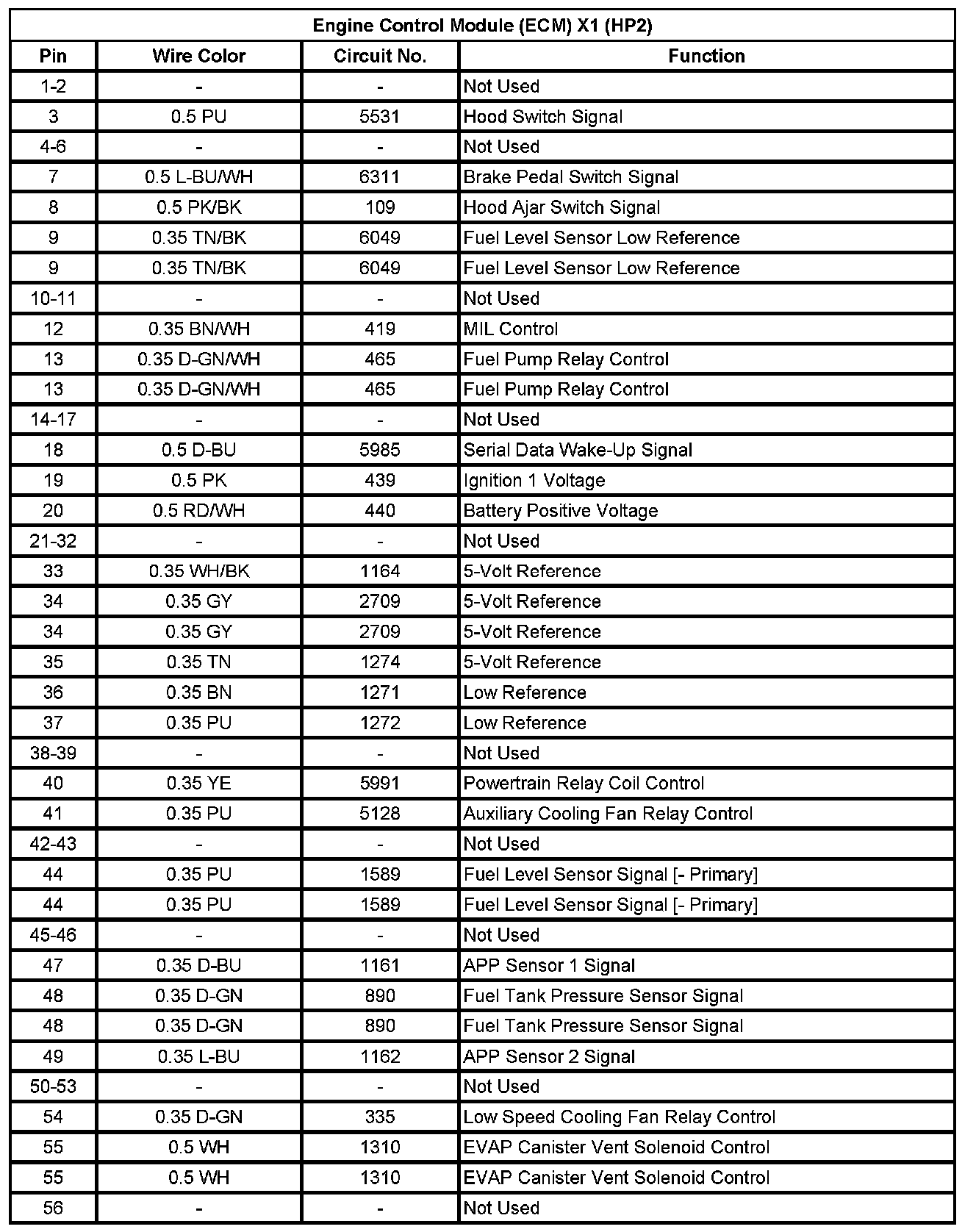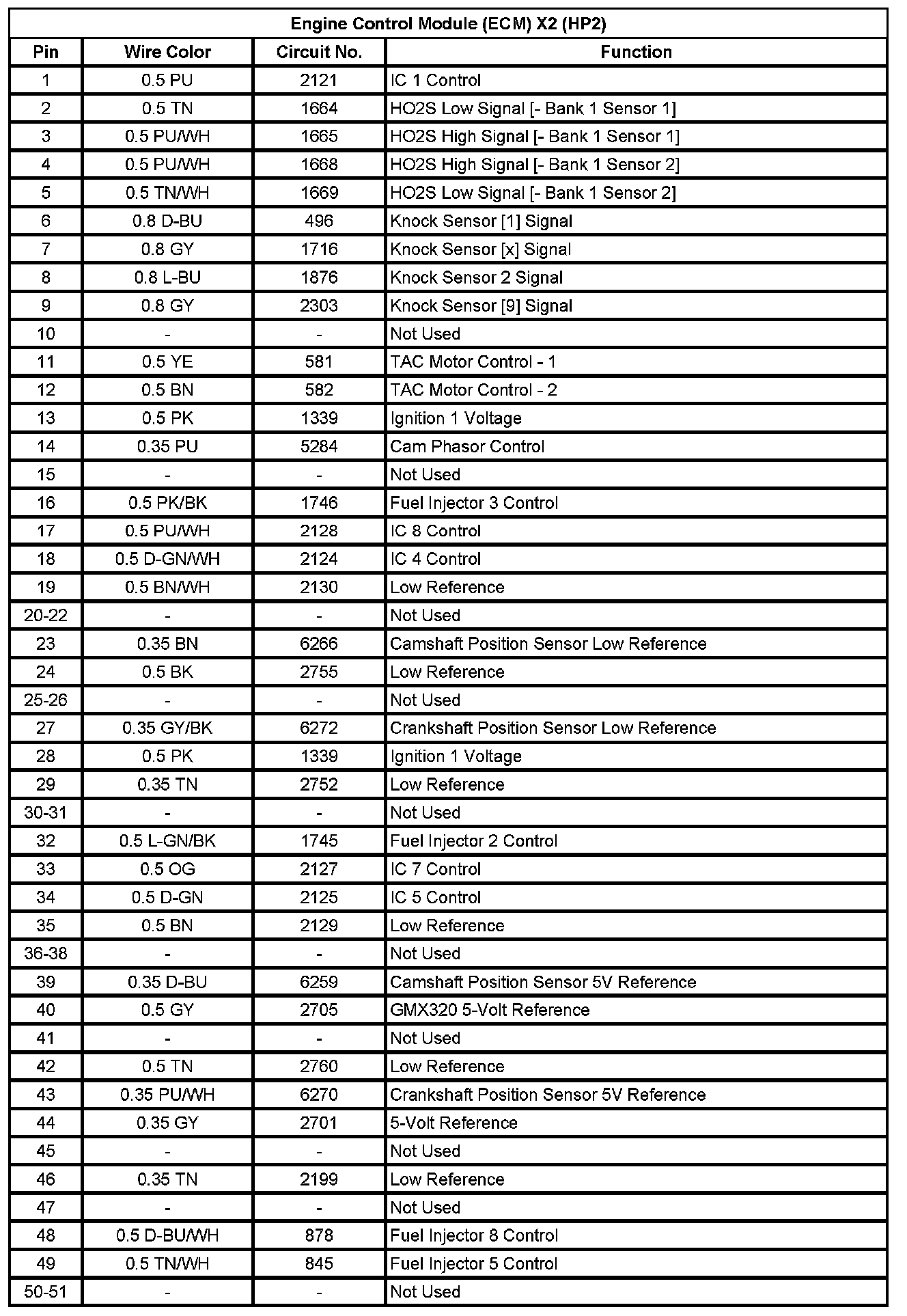 Engine Control Module (ECM) X2 (HP2) (Pin 1 To 51):