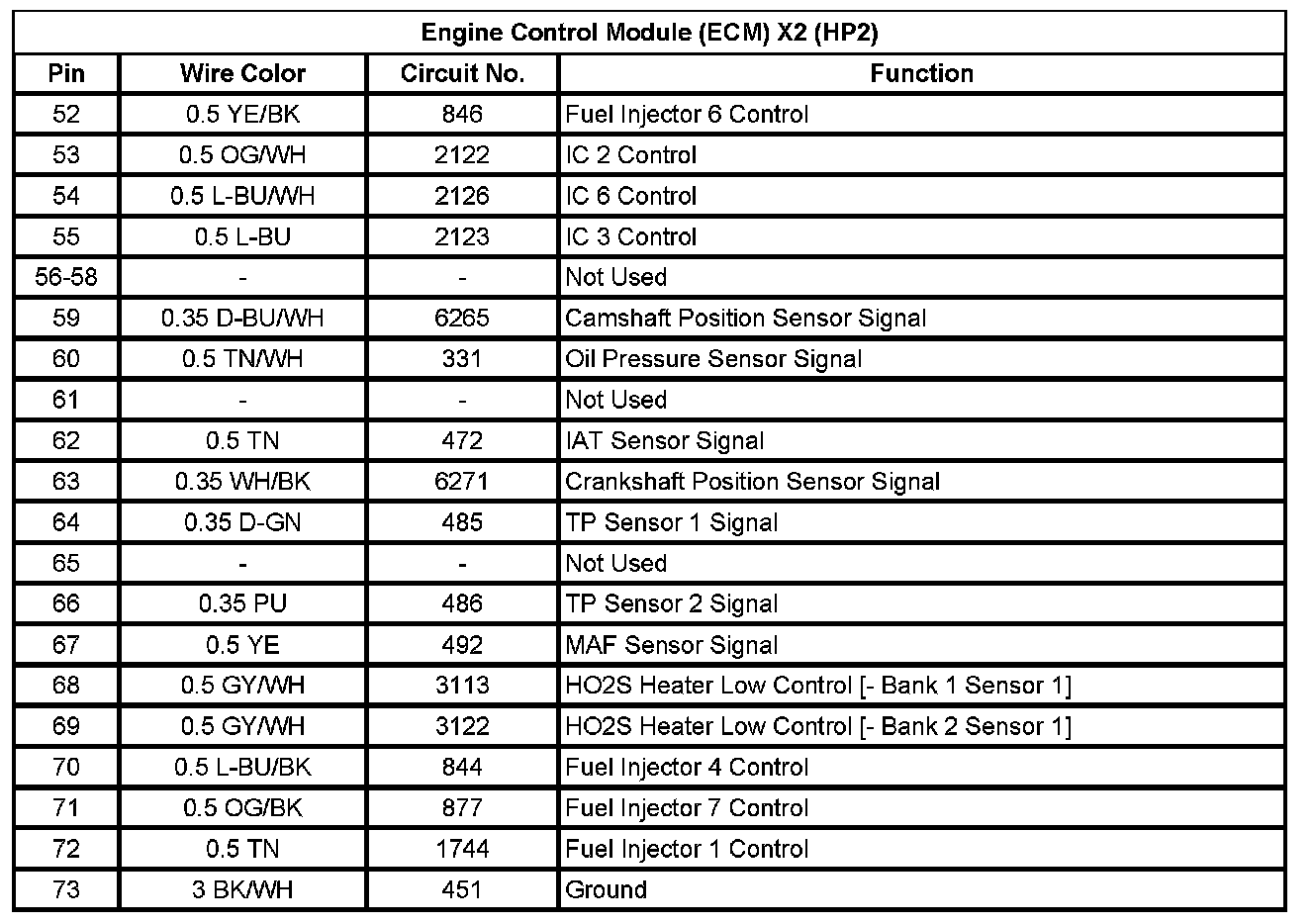 Engine Control Module (ECM) X2 (HP2) (Pin 52 To 73):