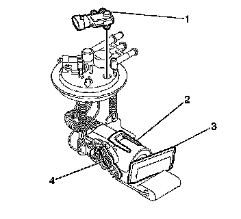 The fuel level sensor consists of a float, a wire float arm, and a ceramic resistor cord. The position of the float arm indicates the fuel level. The fuel level sensor contains a variable resistor, which changes resistance in correspondence to the amount of fuel in the fuel tank. The engine control module (ECM) sends the fuel level information via the class 2 circuit to the instrument panel (I/P) cluster. This information is used for the I/P fuel gage and the low fuel warning indicator, if applicable. The ECM also monitors the fuel level input for various diagnostics.
