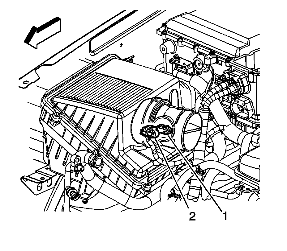 3. Connect the engine wiring harness electrical connector (2) to the MAF/IAT sensor (1).
