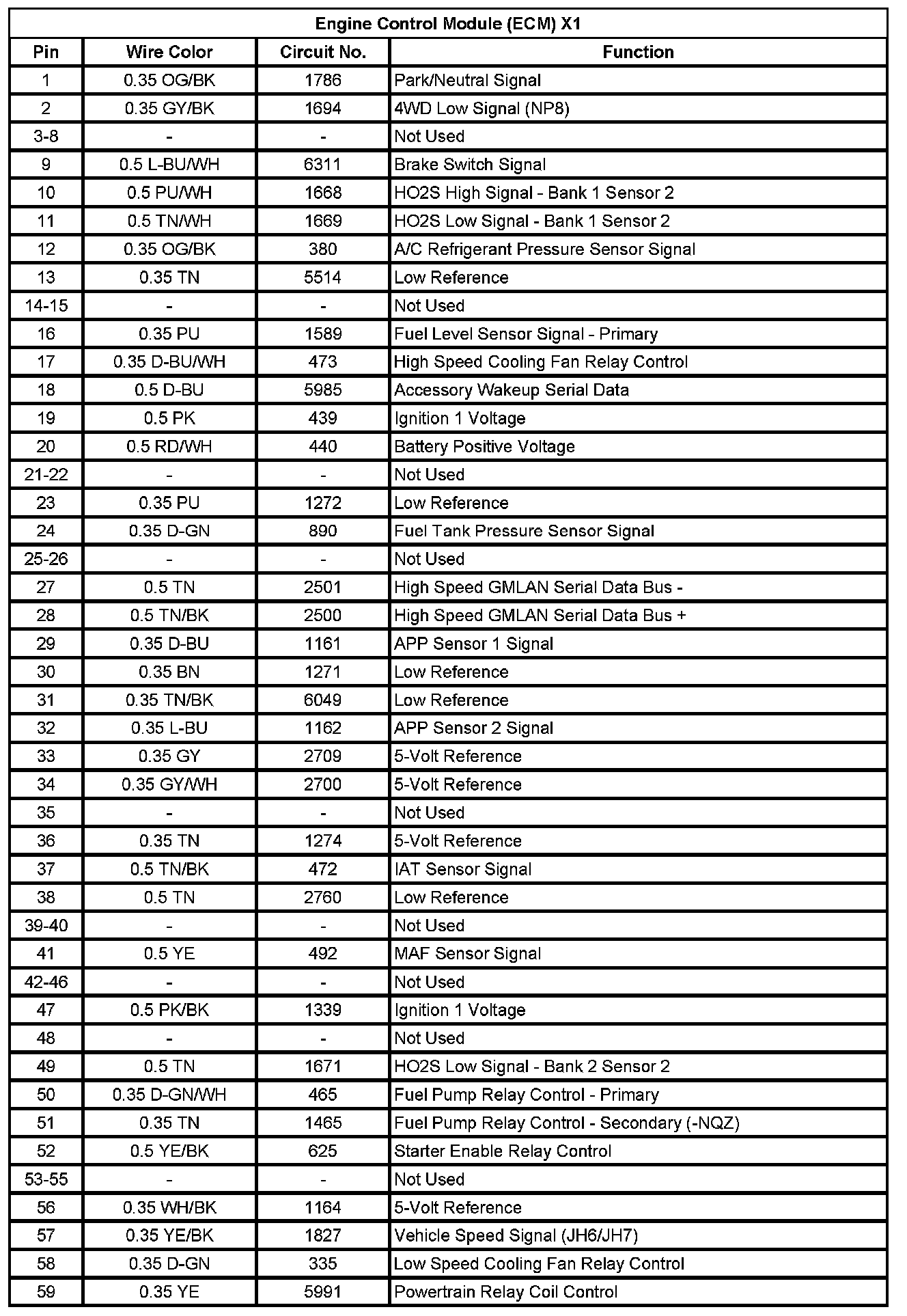 Engine Control Module (ECM) X1 (Pin 1 To 59):