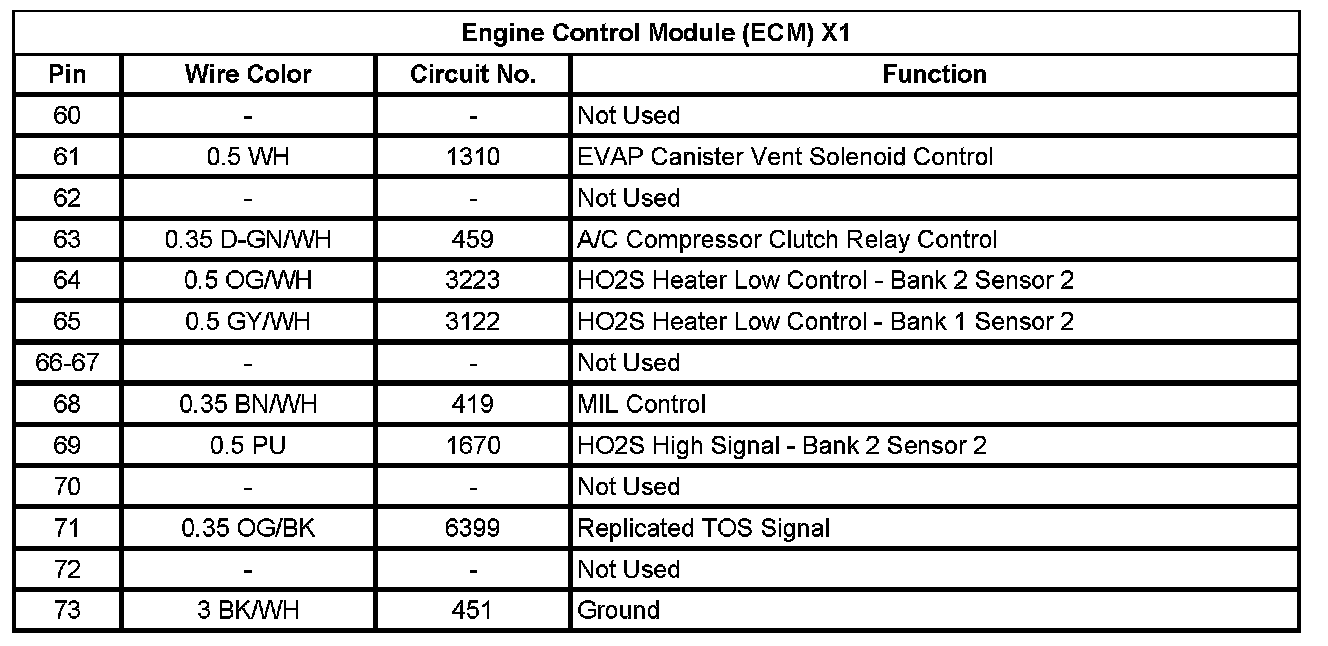 Engine Control Module (ECM) X1 (Pin 60 To 73):