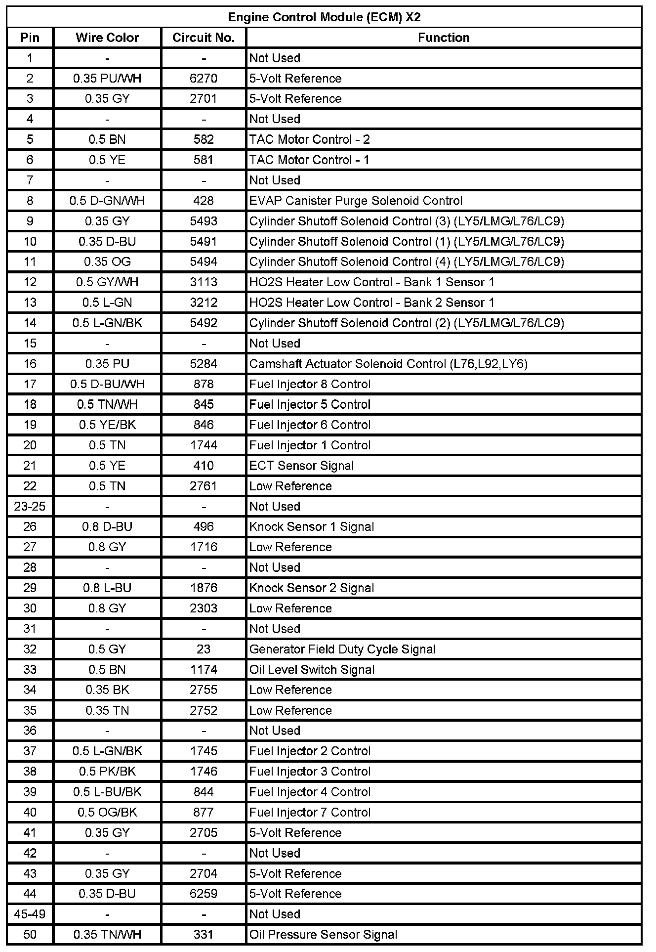 Engine Control Module (ECM) X2 (Pin 1 To 50):