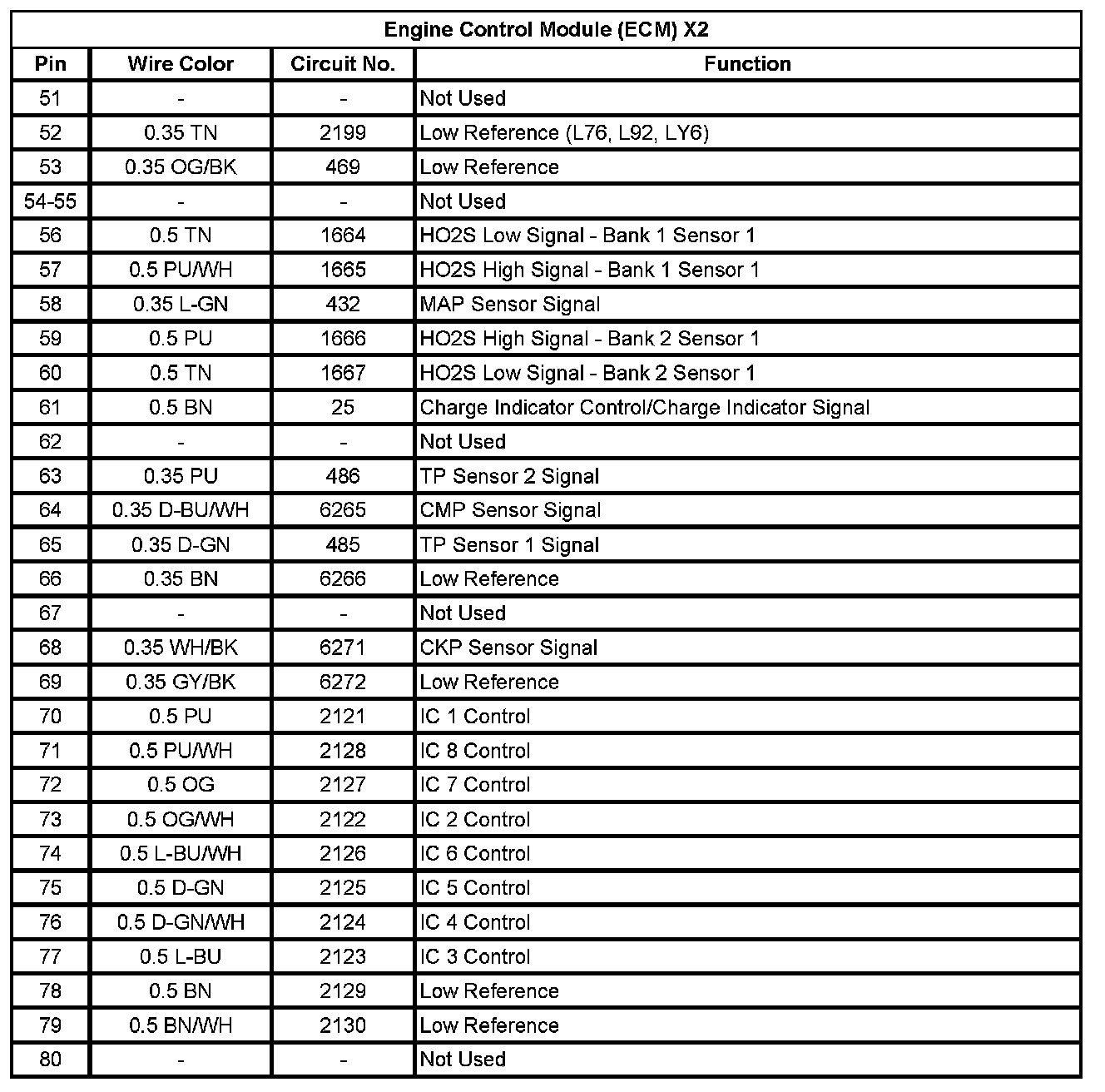Engine Control Module (ECM) X2 (Pin 51 To 80):