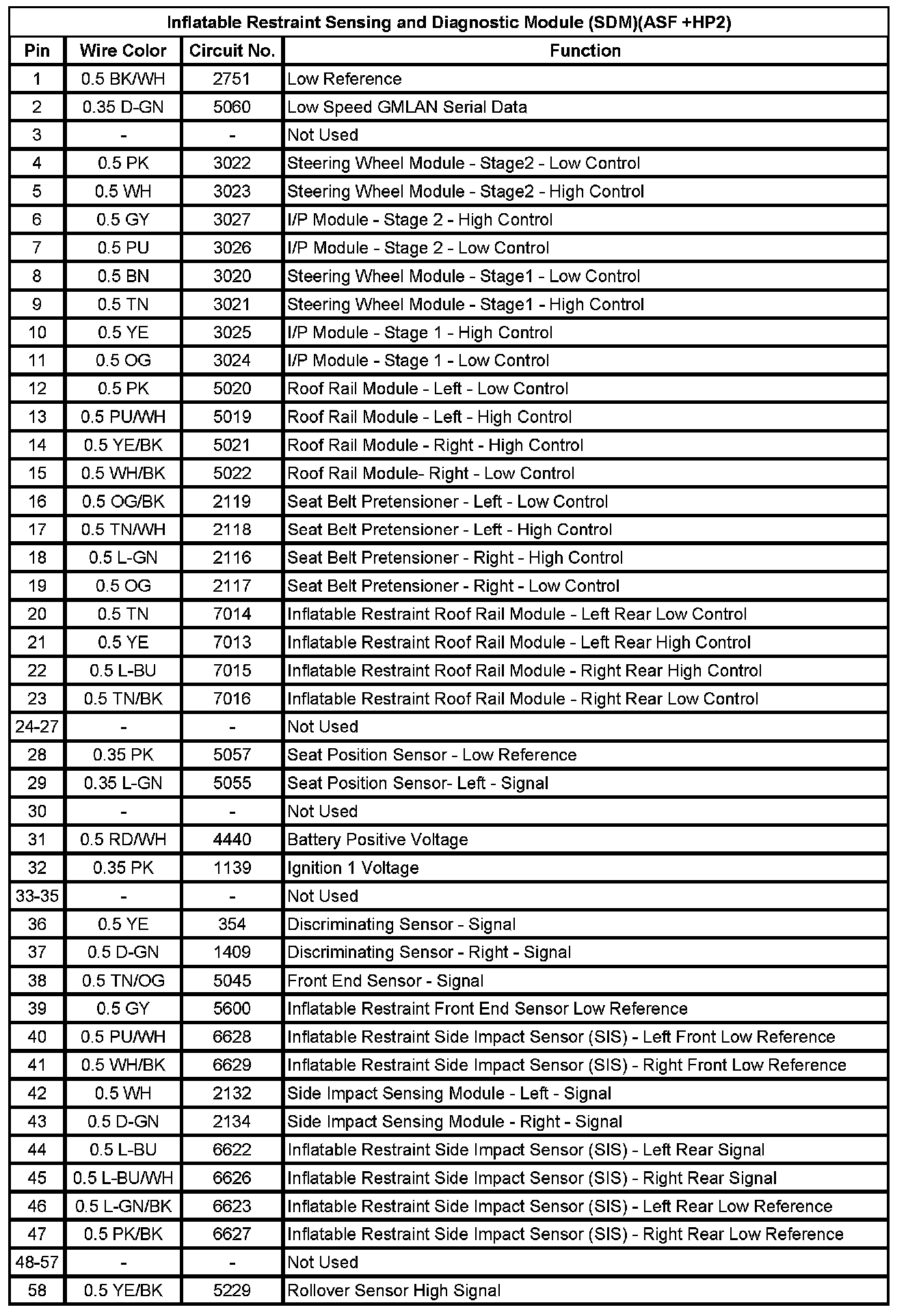 Inflatable Restraint Sensing And Diagnostic Module (SDM)(ASF +HP2) (Pin 1 To 58):