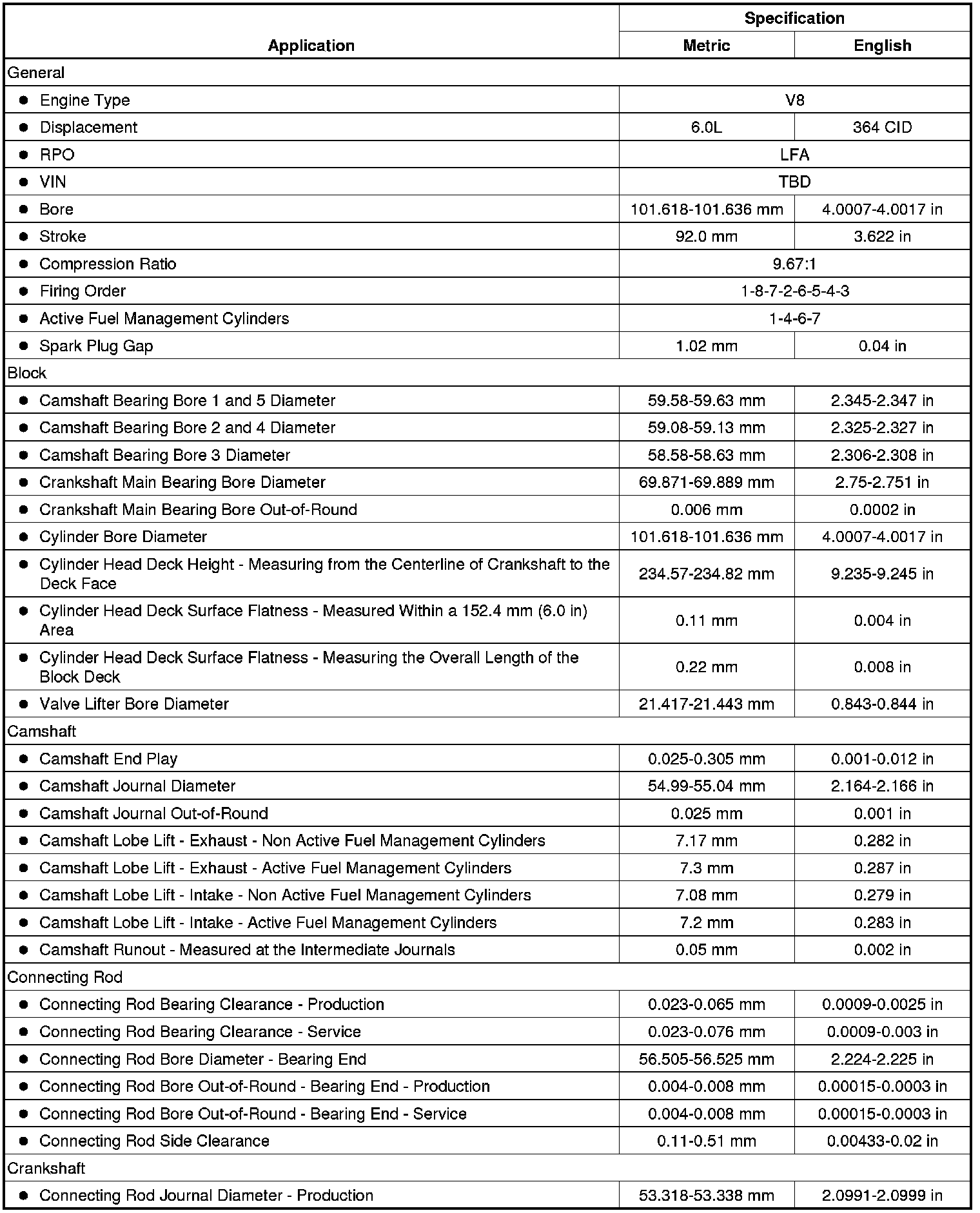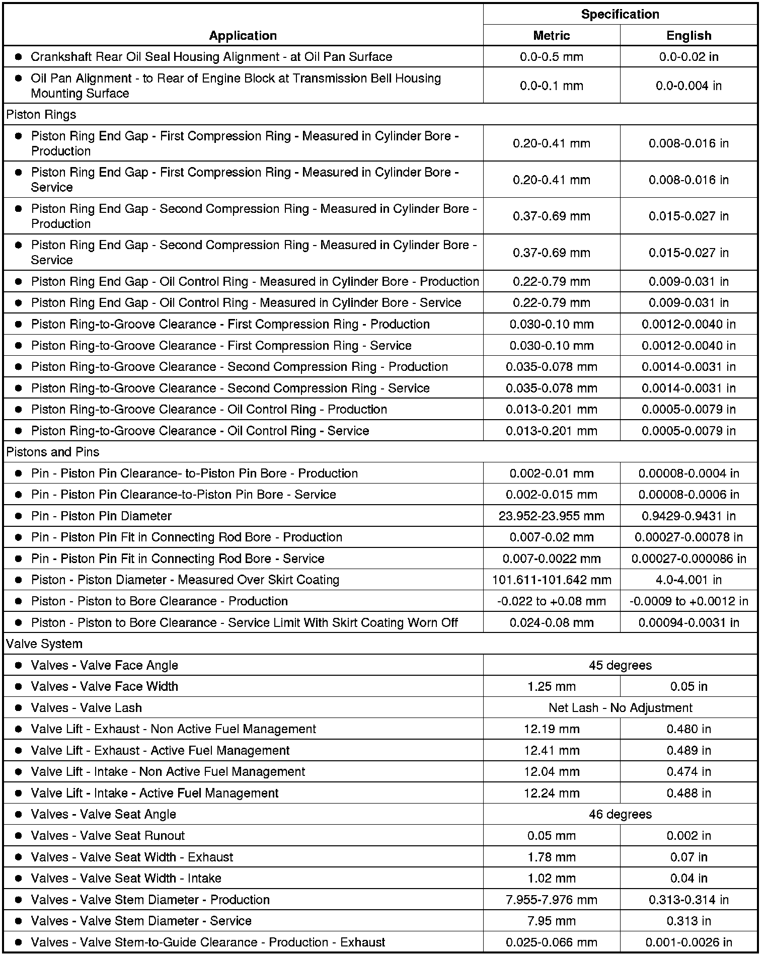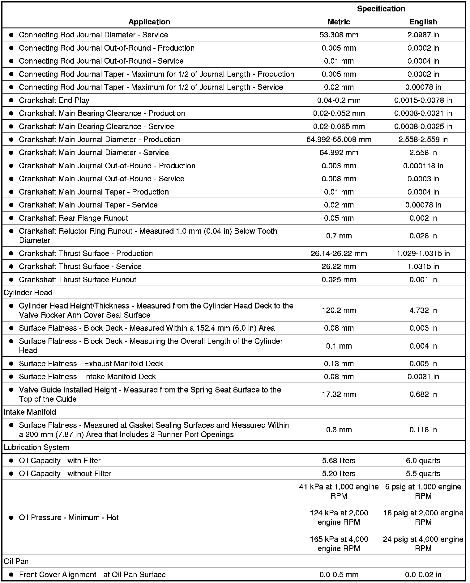 Engine Mechanical Specifications