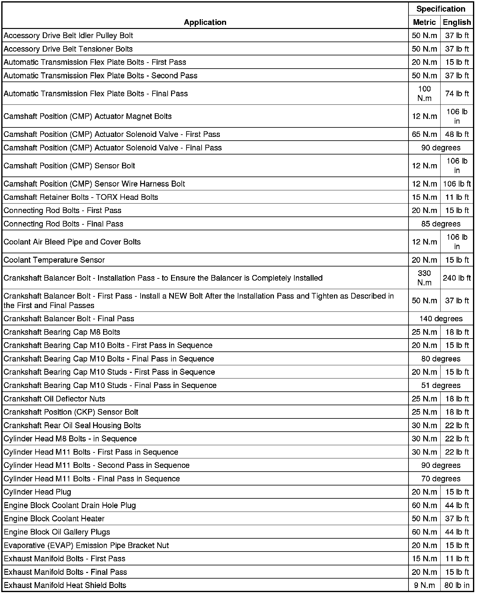 Fastener Tightening Specifications